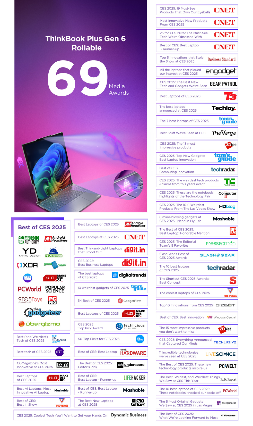在刚刚结束的国际消费类电子产品展CES2025上,,,联想集团卷轴屏AI PC——ThinkBook Plus Gen 6 Rollable惊艳亮相,,并一举荣获CES2025 69项大奖。。。
